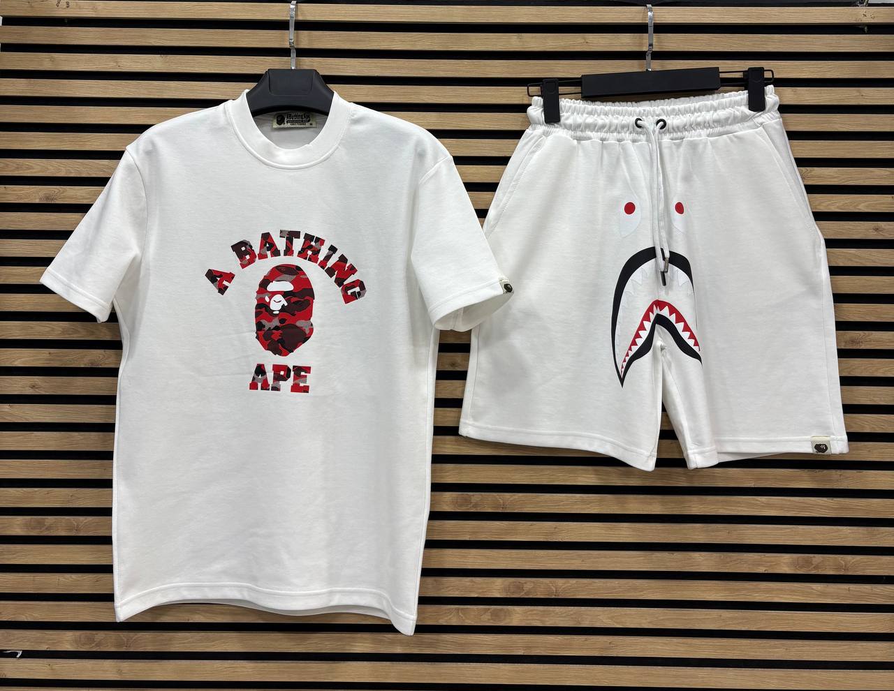 BAPE003 Мъжки Къс Екип Бял
